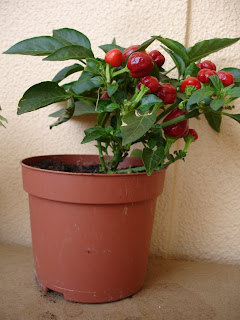 E ontem ofereceram-me mais uma planta. Agora, pimentinhos mas na versão vermelha.